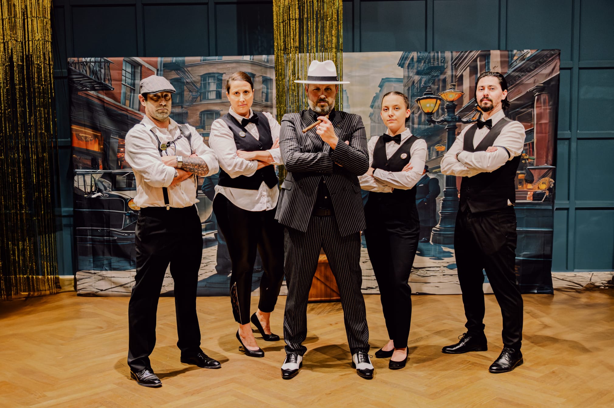 Vabimo vas, da se nam pridružite v zgodnjem Las Vegasu, v glamurozih dvajsetih letih 20. stoletja. Stopite v razburljivi svet ameriške mafijske igralnice, polne blišča, zabave in swing glasbe. To bo nepozaben večer, kjer boste občutili vso vznemirjenje, ki ga prinašajo “rjoveča dvajseta”.